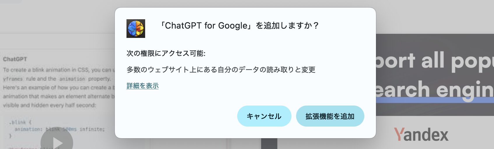 以下より「ChatGPT for Google」を追加