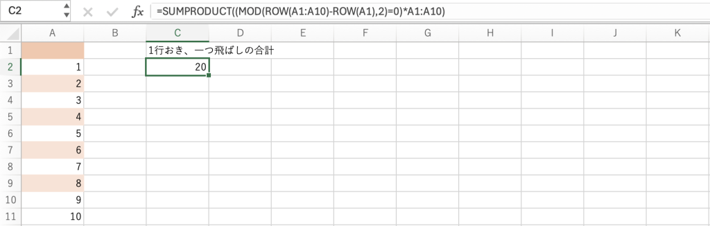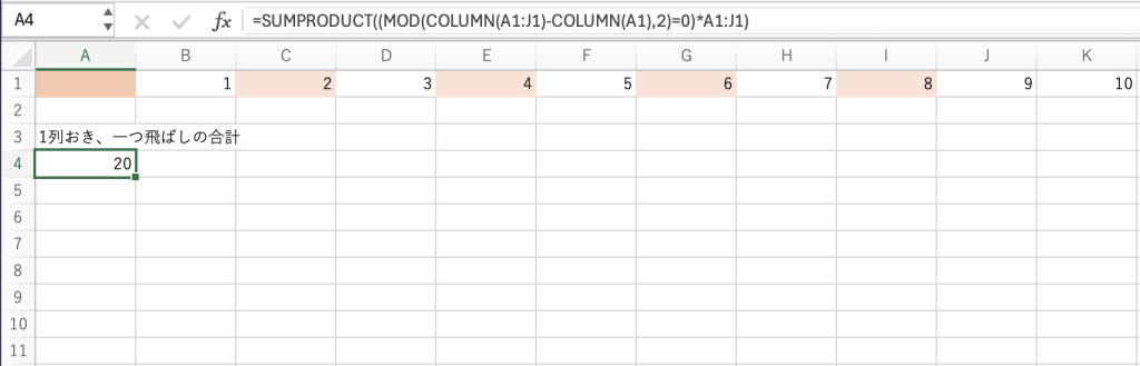 一つ飛ばしの合計例(行でも列でも応用可能)