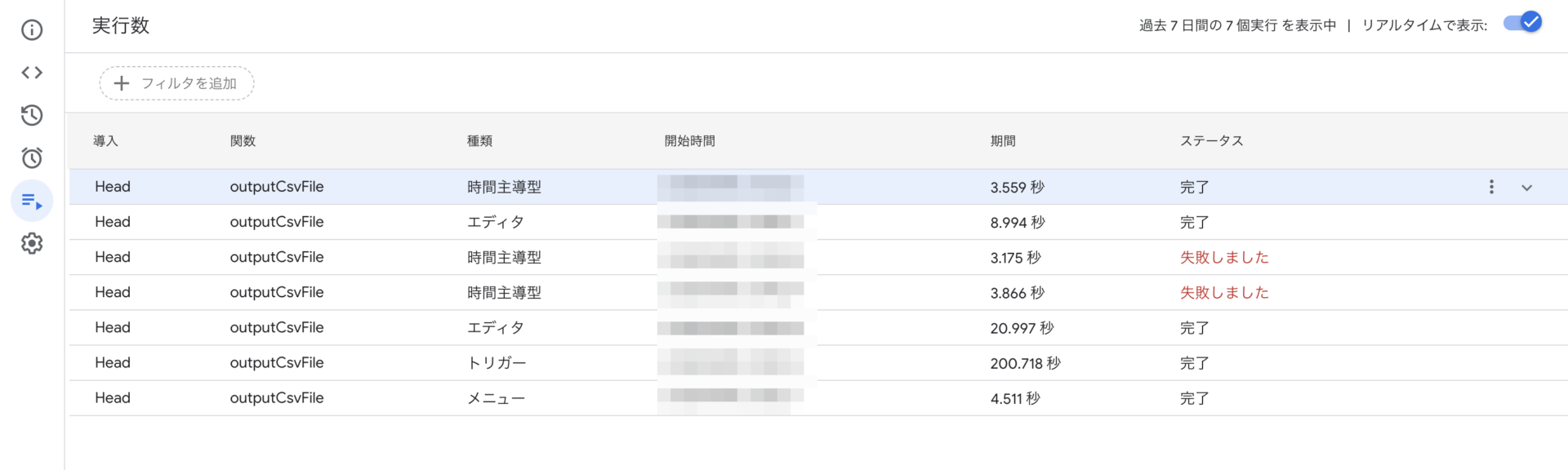 → コードを編集したら、必ず保存💾してください。 - トリガーによる自動実行でエラーが発生した場合
