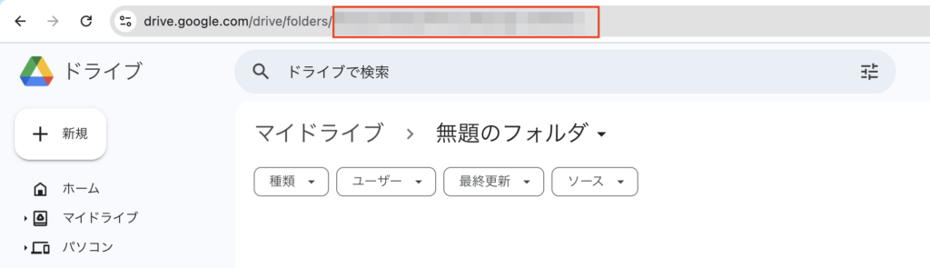 - フォルダIDを使って、Googleドライブ上の正しいフォルダを特定します。