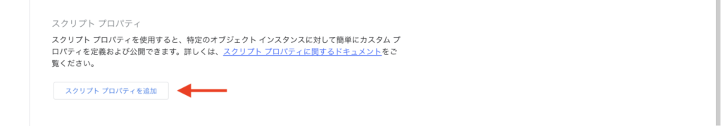 画面を一番下までスクロールすると、「スクリプト プロパティ」のセクションがあります。「スクリプト プロパティを追加」ボタンをクリックしてください。