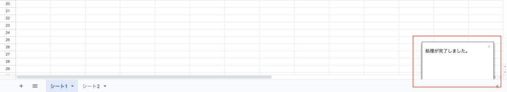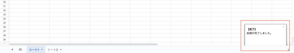 - スクリプトの実行完了を知らせたい時 (例: 「データの転記が完了しました。」)