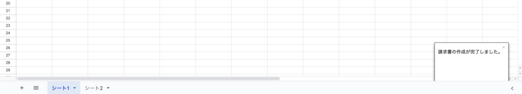 SpreadsheetApp.getActiveSpreadsheet().toast('請求書の作成が完了しました。');