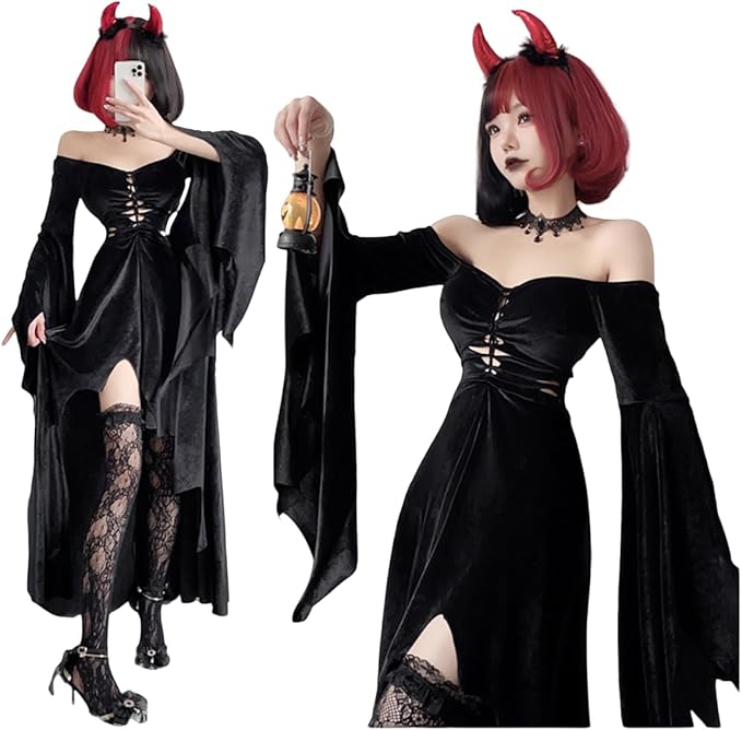 - [JUNDOMECY] 魔女 デビル コスプレ 6点セット|豪華小物付きで本格的な悪魔&魔女スタイルを演出